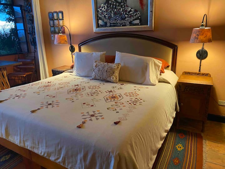 Let us pamper you, it’s your vacation! We offer daily housekeeping, assistance in airport transport. Casita Opal offers a King Bed, additional day bed in the sitting room, fireplace w/remote, purified water, endless coffee, fast WIFI…..